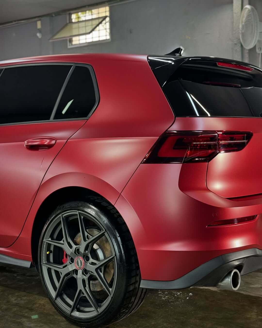 Acabado en rojo mate, logrando un estilo moderno y sofisticado. Este cambio no solo resalta la apariencia del vehículo, sino que también lo protege.